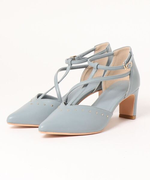 女性らしいレッグラインを演出するポインテッドトゥパンプス。甲のキレイなカッティングとエッジィなスタッズ、華奢なアシンメトリーなストラップ使いで足元をほっそり見せてくれるデザインです。高すぎないセットバックヒールですっきり仕上げ、全体のデザインを邪魔しない仕上がりに。アンクルストラップ部分のパーツ使いで脱ぎ履きがしやすいです。
