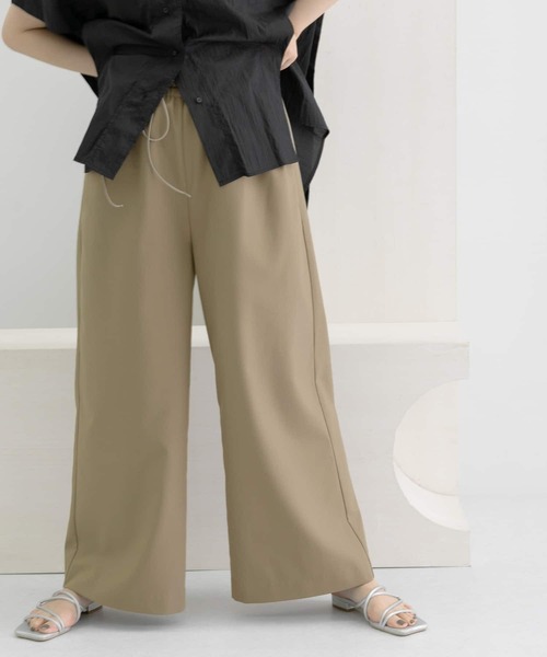 デイリー使いに活躍するトレンドライクなレースアップパンツ【Design】ウエストのデザインが特徴的なワイドシルエットのレースアップパンツ。ウエストはゴムになっており、ストレスなく着用可能◎2段階でウエストが調整でき、付属のゴム紐を使って前後に結んでいただけます◎ウエストをギュッと絞ったときのギャザーもトップスインのスタイルにアクセントをプラス。ゆったりとしたシルエットで身体のラインを拾いにくく、デイリー使いにぴったりな1枚です。【Styling point】大人らしい品のあるベージュのカラーには、ブラウスやシャツ合わせがおすすめです。一見組み合わせるのが難しいイメージのグリーンカラーも、ベーシックな色味と相性抜群。ワイドシルエットなので、薄手のリブニットやカットソーと合わせてカジュアルに◎【Material】サラッとした素材感です。-LAATO-”わたしはわたし"をコンセプトとし、トレンドを意識するのではなく、自分の中で着たい服を確立している人をイメージ。大人の女性のなめらかさや艶やかさを表現するデザインや、柔らかいカラーが特徴的なブランド。シーズン:2022 S/Smodel : 162cm 着用サイズ : FREE-----------------------------《スタッフ着用コメント》[スタッフA]年齢 : 20代後半, 身長 : 155cm, 体型 : 普通普段の着用サイズ : S, M【サイズ感】前後にゴムが入っているのでウエストがかなり楽でした。身長155cmでペタンコ靴ですらない丈感でした。【素材感, 着心地】ワイドなシルエットですが落ち感がある素材なので大きく見えすぎず小柄な方でも挑戦しやすいと思います!程よい厚みなので季節問わず着用できそうでした。-----------------------------※商品画像は、光の当たり具合やパソコンなどの閲覧環境により、実際の色味と異なって見える場合がございます。予めご了承ください。※商品の色味の目安は、商品単体の画像をご参照ください。-----------------------------透け感:なし伸縮性:ややあり裏地:なし光沢:なしポケット:あり-----------------------------
