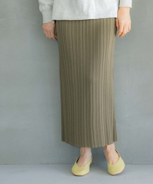 コーディネートのポイントになる、ニットスカート 《機能》 マシーンウォッシャブル:洗濯機で洗える 《素材》 リブの編地で凹凸感がある素材です。体のラインを拾いにくく、程よい落ち感があります。 《デザイン》 無地とボーダーのアソート展開のニットスカート。くすみカラーなので、大人っぽく穿けます。マルチボーダー柄はレトロな印象をプラスしてくれ、コーディネートの主役にもぴったりなデザインです。 《スタイリング》 ナローシルエットなので、トップスはふんわりとしたボリュームのあるデザインがおすすめ。袖ボリュームデザインやゆったりシルエットのアイテムと相性◎です。ショート丈のトップスと合わせると、脚長効果も期待できます。 ------------------------------------------------------- 【気になる商品はお気に入り登録がおすすめ!】 ・在庫残りわずか ・再入荷 ・セールの情報 などの通知を受け取ることができます。 ぜひ♡をクリックして、気になる商品を「お気に入り登録」してくださいね! 【ブランドのお気に入り登録も!】 新商品や再入荷、セール、クーポンの配布など、いち早くお得な情報を受け取ることができます。 -------------------------------------------------------