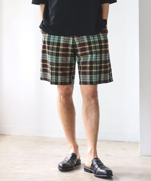 落ち着いた色合いの大人のマドラスチェックダークトーンを基軸にオリジナルのマドラスチェック柄を構築したショーツ。オーセンティックなデザインで、やや裾の広いリラックスシルエットに仕上がっています。落ち着いたカラートーンと風合いで大人のカジュアルスタイルにおすすめのアイテムです。
