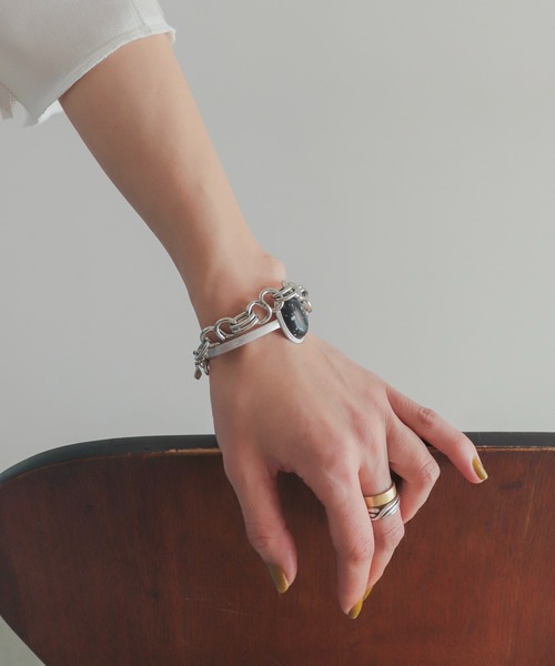 【rapiécage ラピエサージュ】 ■ストーンオーバルバングル ボリューム感のあるオーバル型の模造石がポイントになるバングル。 生成りやベージュが混じったようなホワイトと、ブラックはまだらな白の斑点模様。それぞれ異なる表情の風合いをお楽しみいただけるデザイン。 バングルの部分はヴィンテージのように見えるマットな加工を施すことで、ナチュラルな質感を残しています。 着こなしの一部になるような存在感。麻素材や、透け感のあるブラウスなどに合わせたり、ラフになる春夏の装いにぴったりのアイテムです。 ※商品はrapiécage オリジナルBOXに入れてのお届けになります。 ※同じ石を使用したリング(お問い合わせコード:61818924)、ピアス(お問い合わせコード:61818907)も展開がございます。