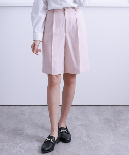 今季マストバイ!センタープレス入りで大人上品な膝丈バミューダパンツ 【デザイン】 短すぎない丈感でカジュアルにも合わせてもレディライクに合わせても着回しの効く万能バミューダパンツ。 ショートパンツに抵抗がある方でも挑戦していただきやすい丈感と美脚見えシルエットにこだわりました。 後ろはウエストゴム仕様となっており楽々な着心地も嬉しいポイント◎ 【素材感】 柔らかな風合いで着心地のよい素材 伸縮性:なし/透け感:なし/裏地:ベージュのみあり 手洗いによる洗濯可 / ドライ・ウェットクリーニング可 【コーディネート】 Tシャツやオーバーシャツと合わせたカジュアルスタイルから ブラウスやジャケットを合わせたキレイめオフィスカジュアルスタイルまでオンオフ兼用で着用できます◎ 足元は季節に合わせてチェンジするだけで印象が変わってお洒落に♪ 【※お取り扱い上のご注意】 1:モニター環境等により実際の商品と多少色味が異なって表示される場合がございます。予めご了承下さい。 2:屋外で撮影された商品は、天候により多少実際のカラーと異なる場合があります。 商品のカラーに参考される場合はトルソー(マネキン)の商品画像をご参照ください。 3:濃い色の商品は、お洗濯や摩擦等による移染にご注意ください。 4:末永くご愛用頂く為に、アテンションタグ・洗濯ネームを必ずご確認の上、着用又はお取り扱い下さい。 5:生産時期により、色、サイズ、デザイン、素材の質感が多少が異なる場合がございます。あらかじめ御了承下さいませ。