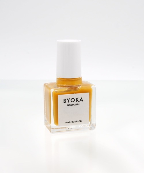 BYOKAオリジナルのネイルポリッシュ 香水のアンバーカラーをイメージしたPerfume こちらは半透明になります(画像は二度塗り) 二度塗りで少しだけ透明感が残るニュアンスカラーです 半透明なので、アラが出ず、塗りやすさも抜群なので ささっと塗りたい方にもおすすめです シンプルでクリーンなボトルデザインに合わせた オリジナルのパッケージに入れてお届けします 塗りやすい細刷毛を採用しています ホルムアルデヒドを発生する原料は使用しておりません SIZE 10ml (H6.2cm, W3.2cm, D2cm) ガラス容器, プラスティックキャップ MADE IN JAPAN ABOUT BYOKA シンプル、エフォートレス、タイムレスであること 人とアクセサリーの調和、身につける事によって生まれる偶発的な美しさ スタイルを完成させるピースとしてのバランスを重視し 素材の持つ美しい質感を大切にひとつひとつ手作業で仕上げています Designer YOKO MATSUDA 学生時代に建築・インテリア学部を専攻、その後アパレルブランドにて レザー製品や布帛のバッグ・小物等の企画に携わる フランスに遊学後、2008年にMOFF online storeを設立 2016年BYOKAを立ち上げる