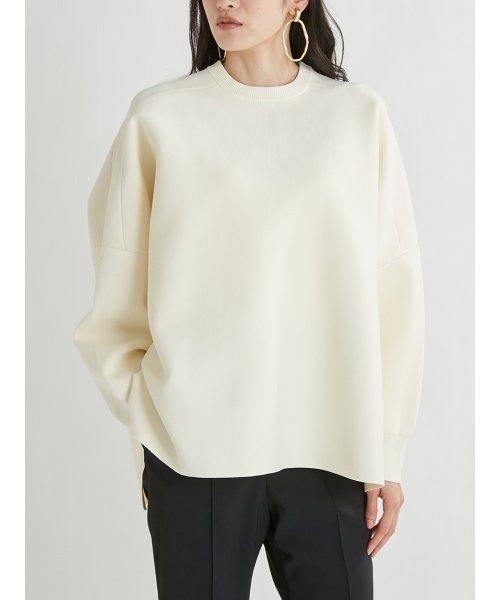 【遊びの効いたポンチョシルエットが鮮度をもたらすオーバーサイズニット】 【Design/Styling】 ポンチョのようなAラインシルエットが愛らしいニットトップス。ラフさを演出するドロップショルダーとボリュームスリーブで、女性らしい好バランスを実現しました。編み目の詰まった綺麗な目面は品が良く、カジュアルからシックまで様々なボトムスにベストマッチ。しっかりした肉感に反した軽さはとても着心地が良く、感度の高いルックスとリラックスな着用感のどちらも兼ね備えた1着です。 【Fabric】 細く繊細な糸を使用し、一見スウェットのように見える美しい目面で仕上げました。ホワイト、ベージュ、ライトブルーの3色展開です。 ウォッシャブル:● ※照明の関係により、実際よりも色味が違って見える場合があります。 またパソコン・スマートフォンなどの環境により、若干製品と画像のカラーが異なる場合もございます。予めご了承ください。 商品の色味は、商品単品画像をご参照下さい。 ※商品画像はサンプルのため、色味やサイズ等の仕様に変更がある場合がございますので、予めご了承ください。
