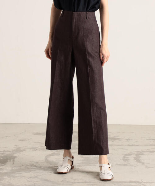 カジュアルなイメージの強いデニム素材を〈TOMORROWLAND collection〉らしいエレガントな表情に仕上げたシリーズ。 上質な質感にこだわったシックなトーンのカラー展開も魅力です。 パンツはハイウエストのデザインやすとんと落ちるストレートワイドシルエットで、ボリュームがありながらもすっきりとした印象の一着。 ディテールを削ぎ落としたミニマルなデザインがクリーンな雰囲気を演出してくれます。 Tシャツとのヘルシーなスタイリングはもちろん、透け感のあるブラウスを合わせたフェミニンな着こなしもおすすめ。 一つあると幅広いコーディネートで活躍してくれる大人のためのベーシックアイテムです。 同素材のブラウス(商品番号:14-01-22-01451)とセットで着用いただけます。 2022SS商品 店舗にお問い合わせの際は、下記の商品番号をお申し付けください。 商品番号:14-04-22-04451