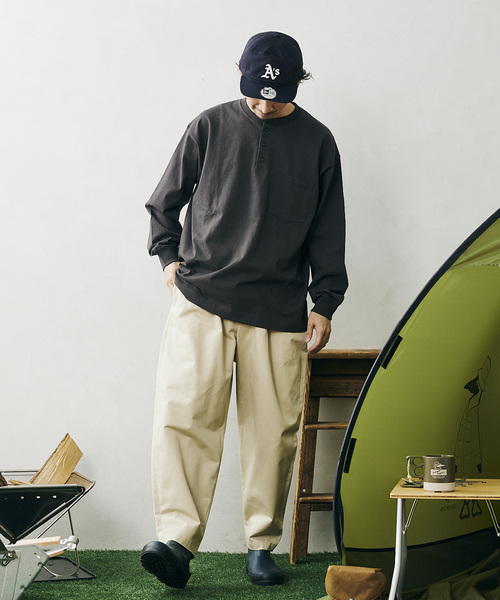 1枚着としてもコーディネートが映えるようなヘンリーネックのカットソー。 有りそうでなかったヘンリーネック+ポケットTEEデザイン。 ふっくらとしていてボリュームのあるオープンエンド糸を使用し、さらっとした肌触りが特徴のアイテムです。 暖かい時期に1枚着として着用するのを想定して、程よい生地の厚みとサイズ感にし、胸ポケットを付けています。 ********************** 裏地:なし 伸縮性:ややあり 光沢感:なし 生地の厚さ:普通 ********************** 【スタッフ着用コメント】 《スタッフH》 身長:170cm/体重:60kg/体型:中肉中背/普段サイズ:M/着用サイズ:L サイズ感: ゆとりがあって袖に溜まる感じも雰囲気あって良いです。 素材感:厚みはありますが、ホワイトを着るときはインナーを着た方が透けの心配がないです。 着心地: 厚みはありますが、肌触りはさらっとしています。 ********************** ※店頭・外での撮影画像は、光の当たり具合で色味が違って見える場合があります。 商品の色味は、スタジオ撮影の画像をご参照ください。 モデルサイズ:H177cm W64kg 着用サイズ:L 本体:洗濯機洗い(弱)、斜行、色あせ