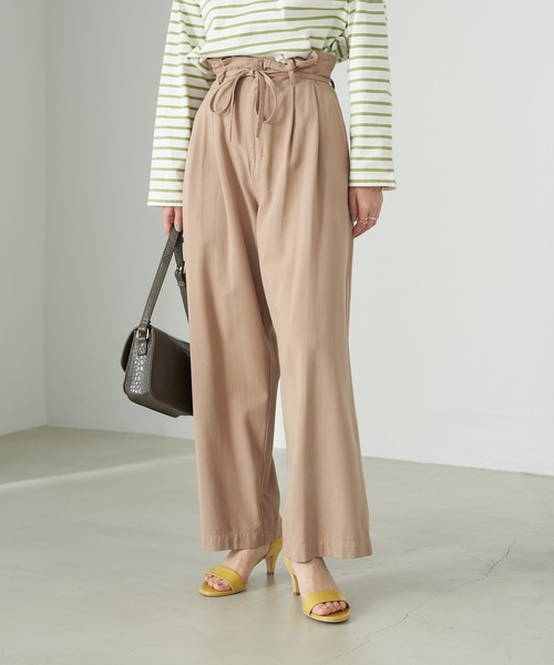 滑らかさと張り感を兼ね備えたツイル素材を使用した、ペーパーバックパンツ。華奢な共布リボンもレディなアクセントに映えるポイント。ウエストは後ろのみゴム仕様なので、安心感があり穿き心地もノンストレス◎デイリーからオフィスカジュアルなどの綺麗めスタイルにと、オンオフ問わずに活躍してくれるアイテムです。透け感[有り]裏地[無し]伸縮性[無し]光沢感[無し]生地の厚さ[薄手]付属品[有り]共布ベルトポケット[有り] 前2つ 後2つ● earth music&ecology ●(アース ミュージック&エコロジー)人とライフスタイルと環境に寄り添い、エントリーアイテムとトレンドアイテムをMash upさせ、いつでも心地よく過ごせる、自由な大人の女性を表現します。▼ 商品のお気に入り登録がおすすめです ▼商品ページ内のハートマークをクリック。完売時の再入荷や、最後の1点の通知、コーディネート画像がアップされたとき、お得なお値下げの際の通知を受ける事ができます。【お知らせ】ページでも通知が確認できます。