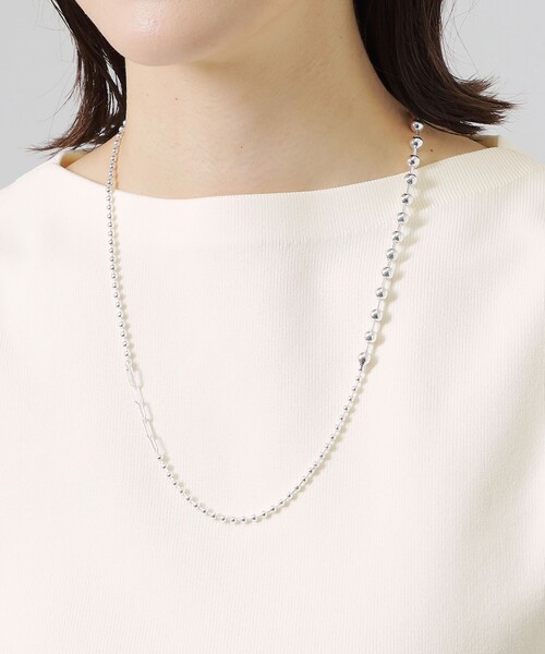 【CAST:キャストコロン 2022年春夏アイテム】【Design/Fabric】トレンドでもあるボールチェーンを組み合わせた、チョーカータイプのネックレス。大きさの異なるボールチェーンを組み合わせています。ワンピースやトップスにさっと付けるだけで今年らしいコーディネートが完成します。※この商品はサンプルでの撮影を行っています。実際の商品とイメージ、サイズ、品質表示、原産国等が異なる場合がございます。※店頭及び屋外での撮影画像は、光の当たり具合で色味が違って見える場合があります。商品の色味は、スタジオ撮影の画像をご参照ください。