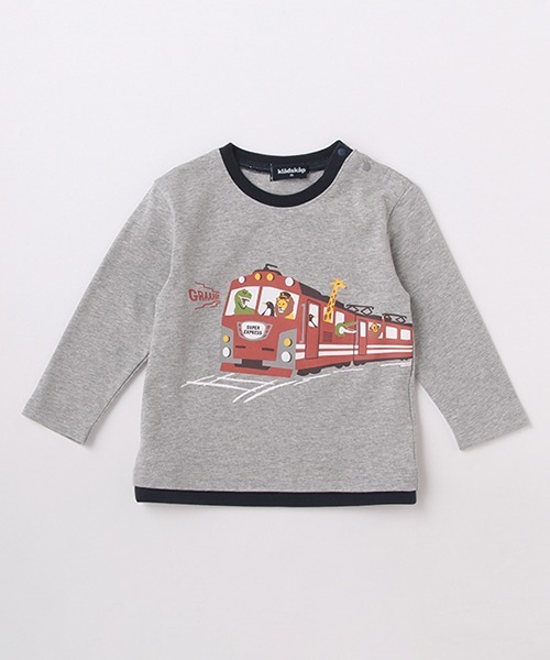 動物たちが乗り込んだ電車のグラフィックがストーリー性を感じさせるTシャツです。 後ろ身頃にもロゴプリント入りで、おしゃれなバックスタイルを演出。裾や衿ぐりは配色で切り替え、レイヤード風のルックスに仕上げました。※80、90サイズのみ肩開き【透け感】透けない【生地の厚さ】普通【伸縮性】あり【裏地】なし【ポケット】なし