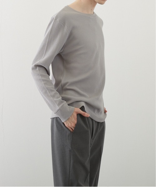 定番のワッフル生地を採用したロンT。一枚で着るのは勿論、インナーとしても重宝します。 男女兼用ユニセックスでお使い頂けます。