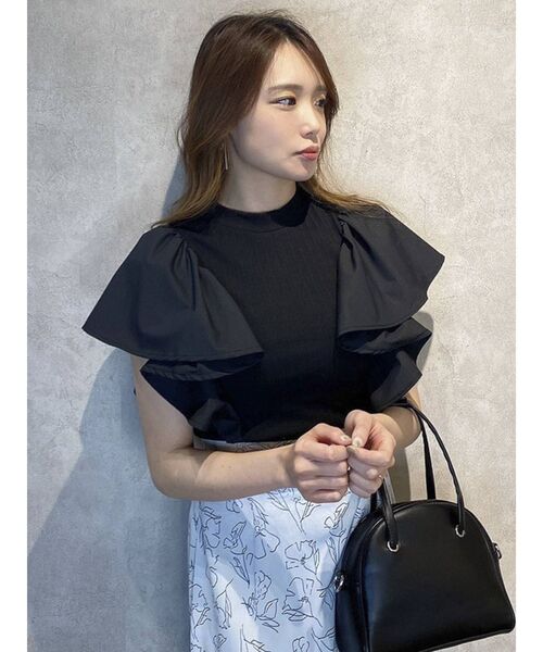 大きめフリルがかわいい!着回し抜群のトップス♪シャツ地を合わせた異素材TOPS♡♡ランダムリブのカットソーを使い軽さを出してカジュアルダウン。張りの出る綿地を使ってフリルデティールを入れこみ清潔感を表現。 甘すぎない大きめのフリルが大人きれいめな雰囲気に着ていただけます♪♪【スタイリング】フレアスカートの様な華やかさあるアイテムを合わせてエレガントなコーデがカワイイです。通勤通学にも使用しやすくアクセサリーもいらずにスタイリングを仕上げてくれます。スカートやパンツスタイルでも大人きれいめな雰囲気になります!デニムスタイルでもカジュアルダウンして素敵な印象に!【 お買いものにおすすめの便利機能! 】★商品のお気に入り登録完売カラーの再入荷時や、ラスト1点の時、セール開始時にお知らせします。★ブランドのお気に入り登録新商品や再入荷、セール情報など、いち早くブランドのお得な情報を受け取ることができます。ぜひご活用ください
