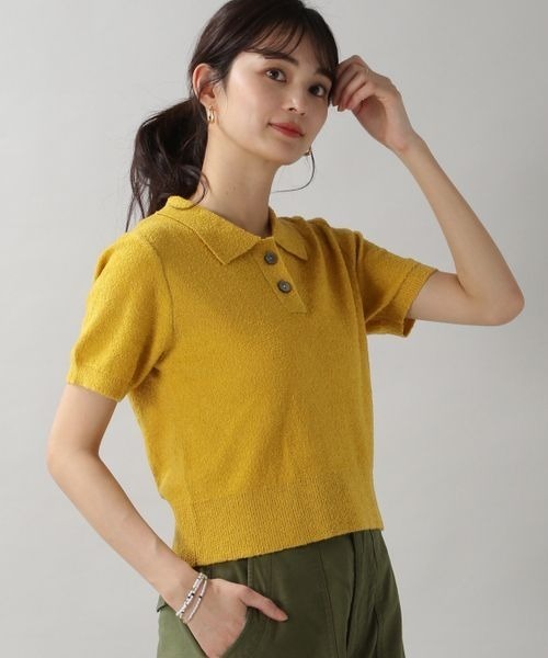 ーーー コンパクトなサイズ感のポロニット。 ポロシャツのデザインをニットに落とし込んだアイテムになっています。 あっさりとした生地感のニットなので春夏に着やすいのがポイント。 ビビッドカラーがスタイリングのアクセントに最適です。 ーーー ショート丈になってるのでボトムスとのバランスがとりやすいアイテム。 あえてビッグシルエットにせずコンパクトなサイズ感にしているのでどこかレトロな印象で着用いただけます。