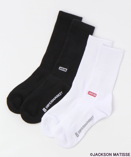 ジャクソンマティスとのコラボライン 『B SUPERMARKET』 ジャクソンマティス×BAYFLOWコラボテーマ『B SUPERMARKET (BAYFLOW SUPERMARKET)』 両ブランドのキーワードであるアメリカをベースに架空のアメリカンスーパーマーケットをイメージ。 日常を彩るデイリーなウェア、雑貨を軸に毎日の生活が楽しく変わる新しいアイテムを提案。 ーーー 半パイルを使用した2Pソックス。 甲部分を包みこみクッション性が高い仕様。 さりげなくくるぶしから覗くロゴ刺繍がアクセント。 ーーー 【JACKSON MATISSE(ジャクソンマティス)】 ブランド名の由来は、2人の天才画家。異端のジャクソン・ポロック(Jackson Pollock)と色彩のアンリ・マティス(Henri Matisse)。同じ年代を生き個々に存在感のある絵画を後世に残した。その2人の天才の異端さ&色彩を取り入れ、ジャクソンマティスの主体となるカルチャーに反映させ、新たな試みにチャレンジしたいと言う理想で、この名前が誕生。ブランドコンセプトはジャクソンマティスのカルチャーである「米国・古着・Surf・Skateboard」に纏わるアイテムに現代のアレンジを加え、肩の張らない日常着を演出すること。 ------------------------------------- ≪お買い物をよりお楽しみいただくために≫ ◆商品のお気に入り登録(ハートマークをクリック) 完売カラーの再入荷通知や、完売間近の通知、セールの通知も受けることができます。 ◆ブランドのお気に入り登録 新商品や再入荷など、いち早くブランドのお得な情報を受け取ることができます。 -------------------------------------