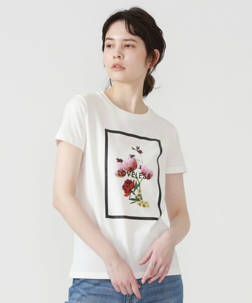 印象的なフラワープリントを施した、クルーネックTシャツ【素材】プリントされたフラワーモチーフは、テキスタイルグラフィックブランド『nowartt』とのコラボレーションにより実現したLOVELESSのオリジナルのグラフィックです。安心感のある程よい厚みのと滑らかな肌触りが特徴のコットン素材を使用しました。【シルエット/デザイン】ラフになりすぎない端正なオフボディのシルエット。ワードローブに取り入れやすい、シンプルなクルーネックデザインです。【スタイリング/その他】サイジングにメリハリをきかせた細身のパンツとの相性の良さはもちろん、スカート合わせて、フェミニンなスタイリングもお楽しみ頂けます。上品な見た目のカジュアルアイテムなので、おうち時間からお出かけまで、着用シーンの広いアイテムです。■nowartt(ノワート)アートディレクター兼デザイナー足立豊樹によるヘリテイジ× モダンアートを取り入れたテキスタイルグラフィックブランド。時代を問わず今を感じさせるアート『now art textile』、平和を感じさせるアート『no war textile』、この2 つのコンセプトを融合しテキスタイルグラフィックを創造している。現在、世界各国ハイコレクションブランド、アウトドアブランド、スポーツブランド、バッグブランド、その他様々なカテゴリーに対してテキスタイルグラフィックを提供している。