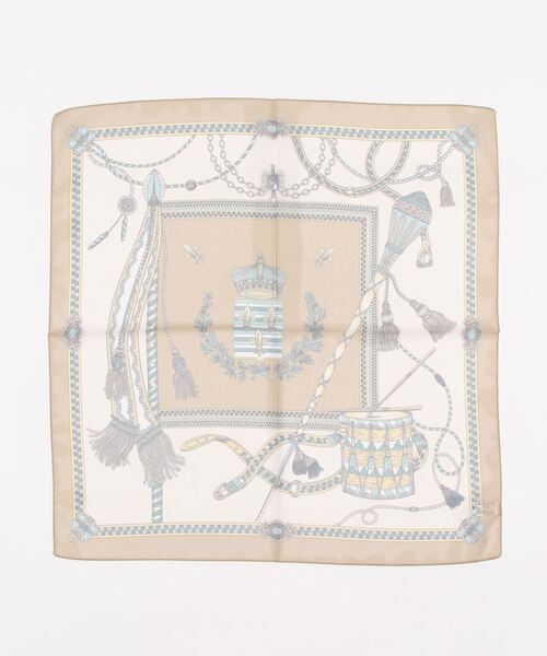 色によって柄が異なるプリントスカーフ。淡い暖色系のカラープリントがフェミニンな表情に見せてくれるデザインです。薄くシアー感のあるポリエステル素材のさらっとした質感です。バッグのハンドルにポイント使いで結んだり、首元に巻いたり、ヘアアクセサリーとしてもアレンジを楽しめます。