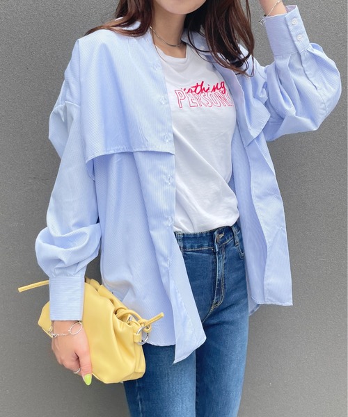 大人気デザインが今年も登場!!【StyleSea】芦屋発ブランド「スタイルシー」。シンプルで気負いのないシルエット、リラックススタイルで、流行に左右されないタイムレスなデザイン。着心地に拘り、リラックスと都会的な間を楽しむ、女性らしさを忘れないライフスタイルブランド。【Design/Fabric】■旬のケープデザインブラウストレンチ風なフライヨークがポイントのスタンドカラー(ノーカラー)ブラウス。バックスタイルも目を惹くスリット&リボンスタイルで、これ1枚でスタイリングが決まります。■春夏に嬉しいテキスタイルハリのあるコットンブロードで、季節を問わず使いやすいです。さわやかで使いやすい細めのストライプ地は、薄手のハリのあるポリエステル地なのでお手入れも楽◎これからの季節に嬉しいさわやかな着心地です。■気になる「二の腕」「ウエスト」をカバーゆったりしたオーバーサイズシルエット、袖コンシャスなボリュームスリーブが華奢見えを実現!裾はサイドスリット入りなので、すっきりとした印象に。ヒップが隠れるチュニック丈は腰回りや体型カバーにもなるので、さらっと気兼ねなく着ていただけます。すっきりとしたバンドカラー(スタンドカラー・ノーカラー)で首~肩周りもすっきり◎■体型カバーポイント【デコルテ】【二の腕】【ウエスト】【ヒップ】【スタイリング】・細身のテーパードパンツなどを合わせることでスタイルアップを実現。・トレンドのロングジレを合わせて旬のスタイルに。・パンツやスカートにインしても◎・きれいめにもカジュアルにも着れるオールマイティなブラウス。・夏は冷房対策や日焼け対策の羽織物にも、肌寒い季節にはニットベストと合わせるのも◎・センタ―プレスパンツやカラーパンツ、トレンドのデニムやスリット入りロングスカートなどと相性がよく、様々なコーデに組み立てできるアイテムです。・シンプルなデザインなのでバケットハットなどの小物、スクエアバッグやキャンバストート、足元はグルカサンダル、ポインテッドトゥパンプスやスニーカーなど、小物次第で、自由にムードチェンジができるので、飽きがこず長くご愛用いただけます。・ワンマイルウェアとしてはもちろん、これから旅行やレジャーにも使えるアイテムです。【生地】――透け感:ややあり厚さ:普通伸縮性:なし―――――――【着用コメント】《スタッフC》身長:158cm/体型:普通(骨格:ストレート)普段サイズ:M~L/着用サイズ:Mサイズ感:オーバーサイズでおしりが隠れる長さ、フライヨークのおかげでメリハリのきたコーデになりますコメント:着るだけでこなれ感が出る一枚です、細身のスラックスやパンツに合わせて着たい!―――お取り扱い上のご注意―――[色味・サイズについて]ご覧のモニター環境や撮影環境(光の照射や角度)により、実際の商品と多少色味が異なって見える場合がございます。また商品画像はサンプルのため、稀にサイズ変更がある場合がございます。予めご了承くださいませ。[シワについて]発送上の状態によって商品がシワになる場合がございます。[においについて]密封状態で入庫し、検品時に再度袋詰めを行っておりますが、素材により染料等の臭いが若干残っている場合がございます。使用していくと臭いが抜けていくのでご安心下さいませ。[柄物アイテムについて]・全ての柄のつなぎ目は合っておりません。・生地の裁断にて、柄の出方が1点1点異なります。※柄のご指定は出来かねます。[色落ちについて]商品により色落ち・色移りがある場合がございます。品質表示を必ずご確認のうえ、着用、お洗濯、保管をお願い致します。《『♡』マークを押してお気に入り登録でお得な情報がたくさんゲット♡》―――――商品のお気に入り登録―――――★ラスト1点のお知らせ ★再入荷 ★セール ★クーポン対象 ★お気に入りの商品コーディネートなど様々な通知をお知らせいたします。――――ブランドのお気に入り登録――――【新作商品】【再販商品】など、お得な情報を受け取ることができます♪是非ともお気に入り登録をお願い致します。