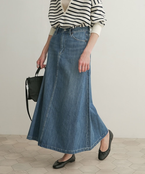 ベーシックアイテムのデニムスカートをトレンド感のあるフレアデザインでご用意しました。裾にかけて程よく広がりを見せるシルエットは華やかで、カジュアルアイテムながらも柔らかい印象に。ウエストも高めに設定することでトップスインしたときにスッキリとしたまとまりのある腰回りを演出してくれます。また、バックスリットを深めに入れているため足さばきも良く、女性らしい抜け感もプラス。季節の始まりに外せないデニムアイテムは、オールシーズン活躍します。※この商品は、摩擦や汗、雨などの使用条件等により、色落ちや他の物への色移りの可能性がございますのでご注意ください。※商品画像は、光の当たり具合やパソコンなどの閲覧環境により、実際の色味と異なって見える場合がございます。予めご了承ください。※商品の色味の目安は、商品単体の画像をご参照ください。透け感:なし伸縮性:なし裏地:なし光沢:なしポケット:あり