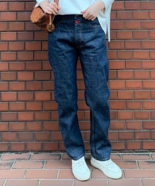 釦フライをあえて表に出し、赤いボタンがアクセントになったビアズリーらしいデニムパンツ。 シルエットはリーバイス501をイメージしたボーイフレンドデニムのようなラフなシルエット。 インドでロープ染めをした本藍のインディゴ糸を使用したデニムに、製品加工を入れフェード感を出した、ヴィンテージ風のやわらかなジーンズです。同じ素材でバギーパンツもご用意。 ⇒ボタンデニムバギーBEZ1021102A0010\30,800(税込) ・美シルエットのパンツをおさがしの方にオススメ 【スタッフコメント】 DAZAI 青山 166cm 【pants】着用サイズ:F フロントのボタンがポイントのデニム。 すっきりしたボーイフレンドデニムで、裾をロールアップして穿いてももたつかないシルエットです。 伸縮性:なし 透け感:なし 裏地 :なし 《商品画像について》 ご覧頂いている商品の写真につきましては、できるだけ実物の色に近くなるように努めておりますが お使いの環境(モニター、ブラウザ等)の違いにより、色の見え方が実物と若干異なる場合がございます。 予めご了承ください。 《予約商品について》 ・こちらの商品はサンプルでの撮影・計測となっております。実際の商品とは、商品の一部仕様が変更になる場合がございます。 ・サンプルの為、混率・洗濯方法の詳細が確定しておりません。確定次第、記載いたします。 ・工場の生産の都合上、納期が変更になる場合がございます。発送日の前後についてはあらかじめご了承ください。 ・入荷状況により、お客様への発送が店頭販売より遅れる場合もございます。 《ハートをタップして商品のお気に入り登録》 登録カラーの商品の「残りわずか」「再入荷」「値下げ」通知を受け取ることができます。 新商品などの入荷情報、最新のニュースやお得な情報なども受け取ることができます。 bottom