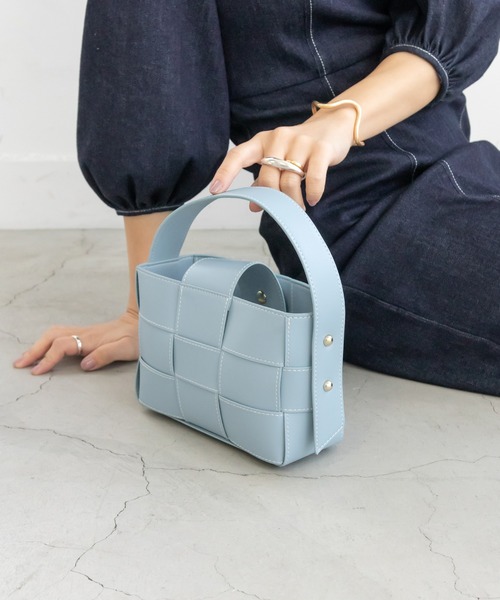 ◆2022SS新商品◆ POINT ・編み込みデザインが女性らしい印象 ・スクエアで愛らしいフォルム ・サイドのアシンメトリーなベルトデザイン ・様々なスタイルに合わせやすい 機能性 ・巾着タイプのインナーバッグで中身が見えず安心