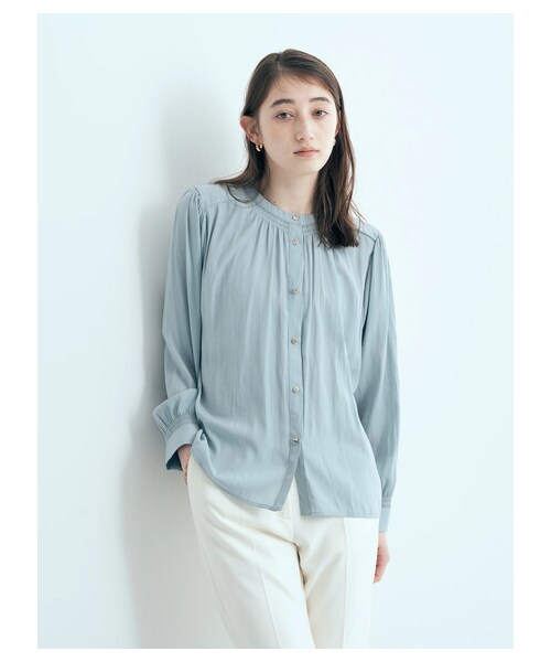 落ち感のあるシルエットに薄手の生地感がレディライクなブラウス。前後2way仕様のデザインで、異なる印象を楽しめるのが魅力です。 体のラインを拾わないゆったりサイズが細見せを可能に◎。ボトムスに合わせやすいレギュラー丈も魅力ポイント。シーズンレスで着回し力も高い一枚です。 透け感[やや有り]※ネイビー無し 裏地[無し] 伸縮性[無し] 光沢感[やや有り] 生地の厚さ[普通] 付属品[無し] ポケット[無し]