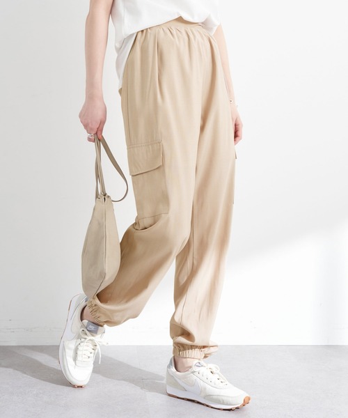 落ち感のある柔らかな風合いの生地で仕立てたフェミニンさ薫るカーゴパンツ。 両サイドのフラップポケットもラフなニュアンスをプラス。裾を絞ったシルエットもこなれ感を演出してくれます。 ウエストゴム仕様で穿き心地もノンストレス。 カジュアルからキレイめコーデ幅広いシーンに活躍してくれるアイテムです。 透け感[無し] 裏地[無し] 伸縮性[無し] 光沢感[有り] 生地の厚さ[薄手] 付属品[無し] ポケット[有り]前2つ ● earth music&ecology ● (アース ミュージック&エコロジー) 人とライフスタイルと環境に寄り添い、 エントリーアイテムとトレンドアイテムをMash upさせ、 いつでも心地よく過ごせる、自由な大人の女性を表現します。 ▼ 商品のお気に入り登録がおすすめです ▼ 商品ページ内のハートマークをクリック。完売時の再入荷や、最後の1点の通知、コーディネート画像がアップされたとき、お得なお値下げの際の通知を受ける事ができます。 【お知らせ】ページでも通知が確認できます。