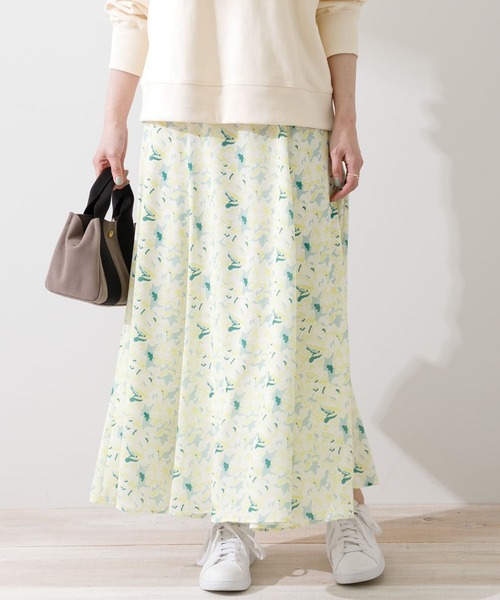 落ち感のあるサテン素材に、春を感じる鮮やかな色使いの手書き風のフラワープリントをのせ、一気にシーズンムードを高めてくれる事間違いなしのスカート。切り替えを入れることで腰回りはすっきりと、裾に向かって広がる美しいフレアシルエットです。※商品画像は、光の当たり具合やパソコンなどの閲覧環境により、実際の色味と異なって見える場合がございます。予めご了承ください。※商品の色味の目安は、商品単体の画像をご参照ください。-----------------------------透け感:なし伸縮性:なし裏地:あり光沢:なしポケット:なし-----------------------------