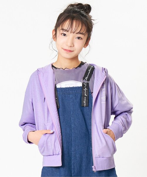 ALGY(アルジー)のパーカー「ガーリーロゴUVカットパーカー」は、流行に敏感な女のコの日常を可愛く、甘く彩るデザインが人気!着回し抜群で一枚あると便利!