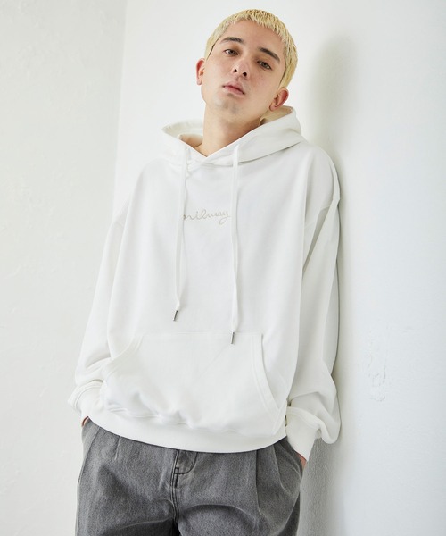 ------------------------------------------------------Instagramにて新着情報更新しております。↓@nilway_official------------------------------------------------------【Nilway 22Spring/Summer】-the brilliant colors-販売希望の声が多かったロゴシリーズが遂にリリース!今回はその中から主役級のプルオーバーパーカーをご紹介。定番のWHITE/BLACKにトレンドのGREEN/CHARCOALも加えた全4色。ボディーカラーによって刺繍色を変更し、高見えする配色に。ソフトでふくらみのある上質なタッチで、適度にハリ感も持たせたファインコットンを高配合した裏毛素材。通常このプライス帯だと扱うことが難しい高級な素材感です。それだけに染料にもこだわり、絶妙な色出しを表現しています。シンプルながら息長く愛されて欲しい思いで、使えば使うだけ味が出るのも魅力的です。腕周りを大きくとったルーズスリーブにたっぷりの身幅など、旬なビッグシルエットに設定。それに合わせてセンターロゴもやや大きめに刺繍しています。同素材でビッグスウェット(品番:az21489n)も展開してます。男女問わずユニセックスに推したいこの春おすすめの1着です。men's Model 177cm/57Kg 胸囲82 ウエスト69 ヒップ87 サイズL着用Model Alan 178cm/60kg サイズL着用【お買い物をお楽しみいただく為に】▼商品のお気に入り登録完売カラーの再入荷通知や、ラスト1点の通知、セールの通知も受け取ることができます。▼ブランドのお気に入り登録新商品や再入荷等、いち早くブランドのお得な情報を受け取ることができます。