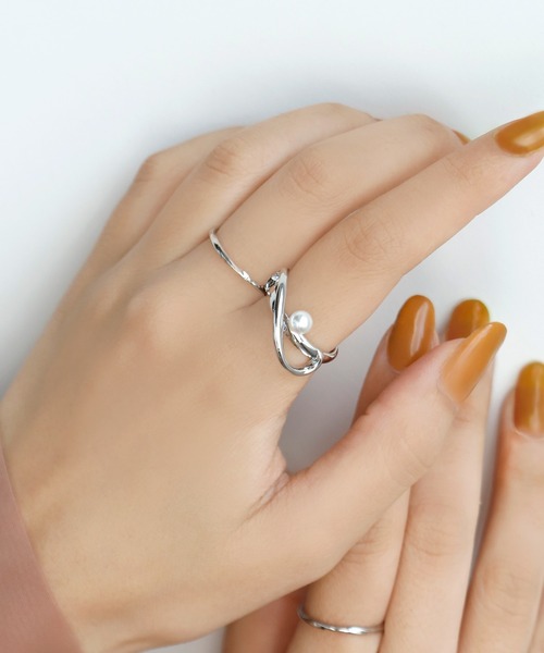 滑らかなカーブを描くメタルが、ニュアンスたっぷりな手元へと導いてくれるリング。パールが柔らかな光を放ち、女性らしい華やかな雰囲気をプラスします。どこか個性的なデザインのパールリングは、カジュアルなコーディネートのさりげないクラスアップにぴったりです♪※ATTENTION※■製造・輸送時についた微細なキズや、塗装剥げ、接着剤のはみ出しが見られる場合がございます。■パールの配置には若干の個体差がございます。上記は不良の対象外となりますので、予めご了承くださいませ。
