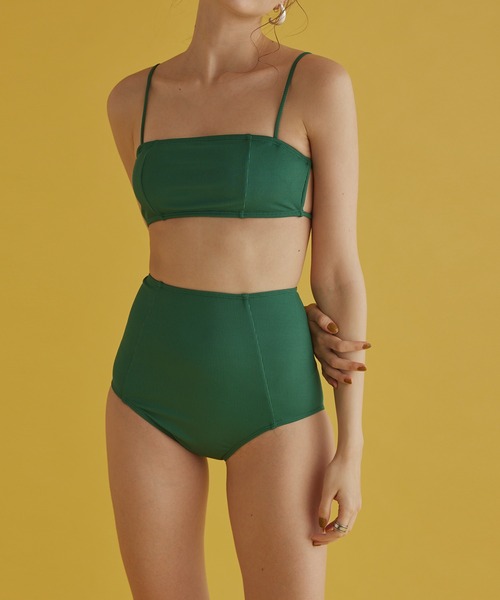 ショートブラとハイウエストショーツの絶妙なバランスがスタイルを良く見せるシンプルリブビキニ。 ・細めのショルダーラインからのバッククロスデザインがポイント。 ・ノンワイヤーでストレスフリーに着用でき、普段使いのブラとしてもスタイリングできます。 ■サイズ表記■ 【S】アンダー:62、カップ:A-C推奨、ウエスト:52、股上:35 【M】アンダー:66、カップ:B-D推奨、ウエスト:56、股上:36 【L】アンダー:70、カップ:C-E推奨、ウエスト:60、股上:36 ------------------------------------------ ワイヤー:なし パッド取りつけ:可能 肩ストラップ取り外し:不可 アンダー:調整不可 ------------------------------------------ ◆当店のサイズ表記について ※製造工程の関係上、各採寸箇所実寸(平置き)より【約-3cm~+3cm】程度は誤差の許容範囲とさせて頂いております。 ◆採寸箇所の詳細につきましては、画像をご確認くださいませ。 ◆弊店で表記しているサイズはすべて弊店スタッフが採寸した実寸値になっております。 お手持ちのアイテムとサイズを比較されますと、大きさのイメージがつかみやすいかと思いますので、 こちらの数値を参考に、ぜひ一度ご購入前にお確かめください。