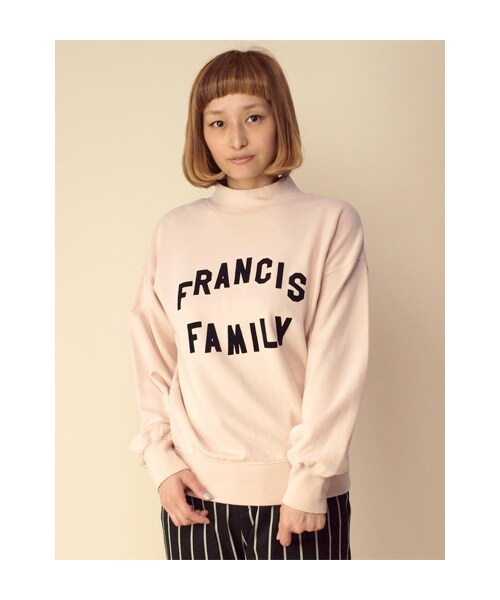 インパクトのあるロゴが可愛いハイネックプルオーバー。ボトムはスカートでもマニッシュにパンツでも相性良いです。