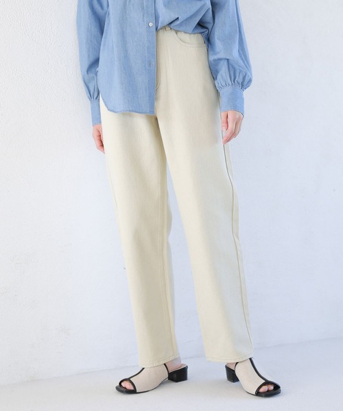 ハイライズのストレートデニム。ジャストウエストからヒップにかけて、丸みがありながらもスッキリとした女性らしいシルエット。旬なストレートラインに仕上げ、こだわりのフィット感に。【素材】ソフトな穿き心地ながらも、デニムらしいハリ感も残した絶妙なコットン素材。【スタイリング】シーズン問わずにお使いいただける、優秀アイテムです。