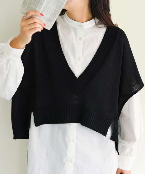 \\ WEB限定アイテム!!// レイヤードを軽やかに楽しむ、深Vネックニットベスト。 レイヤードスタイルに欠かせないニットベスト、ワイドな身幅でゆるっとしていながらスッキリとした深めのVネックやスリット入りのショート丈がコーディネートをバランス良くまとめてくれるデザイン。 春から秋まで幅広く着回しが楽しめる薄手のニット生地なので、合わせるアイテムを選ばずレイヤードを軽やかに仕上げてくれます。 定番で着まわしやすいホワイト・ブラック、コーディネートの主役になるグリーン・ブラウンの4色展開で登場いたしました。 COORDINATE ボリュームがあるトップスやボトムス、チュニックやワンピースとも好相性。 身幅がワイドなので細身のシルエットを合わせるとより好バランス◎ パンツスタイルにはインナーに抜け感をプラスするだけで女性らしい印象に仕上がります。 *********************** 洗濯方法:手洗い 透け感:ややあり 伸縮性:ややあり 光沢感:なし 生地の厚さ:やや薄い *********************** ※着用、お取り扱いは、商品についておりますアテンションタグを必ずご確認ください。 ※ご覧のモニター環境や撮影環境により実際の商品と多少色味が異なって見える場合がございます。 【お気に入り登録がオススメ!】 ●商品のお気に入り登録 「在庫残りわずか」の通知や、「完売カラーの再入荷」、「セール」の通知を受けることができます。 ●ブランドのお気に入り登録 新商品や再入荷等、ブランドのお得な情報を受け取る事が出来ます。