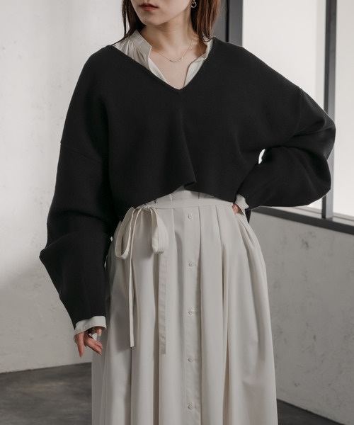ゆるっとさとスッキリさを兼ね備えた美シルエットショートニット 【デザインポイント】 綺麗な編地が特徴の"ミラノリブ"が上品な印象にしてくれます。 ゆるっとしたボリューム感で 可愛らしさと抜け感を出してくれます。 ショート丈で スッキリ女性らしさもプラスされるデザインです。 バックのカッティングは、 程よい肌見せやインナー遊びが楽しくなるこだわりポイントです♡ 【素材】 さらっと滑らかな肌触りで、 キャミソールなどの上から着ても着心地がとても良い素材感です。 綿を使用している為、オールシーズン対応できます! 【コーディネート】 ショート丈で顔まわりスッキリ見えするVネックで、 細身なタイトスカート・パンツ合わせはもちろん、 ボリュームのあるフレアスカートなどのボトム合わせも相性抜群です♡ ワンピースやシアートップスなどでレイヤードするのも今っぽく、 同素材のミラノリブニットスカートとのセットアップもオススメです! ---------------- 透け感/なし 伸縮性/あり 裏 地/なし 厚 み/ふつう ---------------- ※サンプルにて撮影をしておりますので、実際の商品とは色味・仕様や加工・サイズ等が若干異なる場合がございます。予めご了承くださいませ。 ※商品の取り扱い方法につきましては、タグ等に記載されている「取り扱い上の注意」「洗濯表示」をご確認ください。 ※屋外での撮影画像は、光の当たり具合で色味が違って見える場合があります。あらかじめご了承ください。なお商品の色味は、スタジオ撮影の画像をご参照ください。 ....................≪INFORMATION≫...................... ▼ 商品のお気に入り登録 ▼ 完売カラーの再入荷やラスト1点、またプライスダウンしたセール通知を受け取ることができます。 ぜひご登録ください。 ▼ ブランドのお気に入り登録 ▼ 新商品や再入荷など、ブランドのお得な情報をいち早く受ける事が出来ます。 ぜひご登録ください。