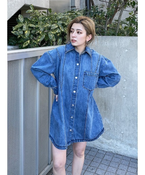 厚手のデニムにケミカル加工を施してカジュアルな雰囲気にしたシャツOPです。 オーバーサイズでほんの少しAラインにしたシルエットはどんな体系にもマッチする着易さ抜群のシルエットです。