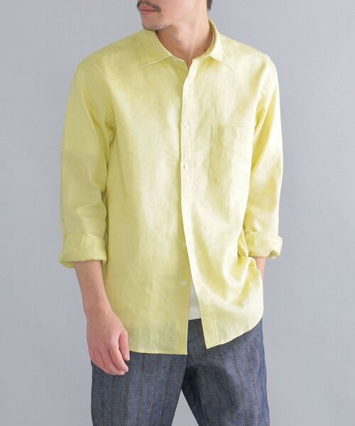 機能糸"SOLOTEX(R)"と"SAFILIN社"リネンのハイブリッドファブリックを使用したシャツ ◆リネン特有の光沢感、柔らかさに優れる"SAFILIN社"の素材を使用 SAFILIN社のフレンチリネンは、フランス北部ノルマンディ地方で栽培されたフラックスだけを厳選して調達。 吟味を重ねた原料で紡績されたリネン糸は、レベルが高く良質で安定性があります。また、原草までのフルトレーサビリティを行っております。 更に原料が良質で均質なため、番手のムラやネップが少ないのが特徴です。そのため、やわらかく肌触りの良いきれいな生地を作ることができます。 ※トレーサビリティ:物品の流通経路を生産段階から最終消費段階あるいは廃棄段階まで追跡が可能な状態 ◆機能糸"SOLOTEX(R)"をブレンドした別注素材により、高いストレッチ性を確保 SOLOTEX(R)糸は、通常ストレッチ素材に使われるポリウレタンよりもシワになり難く、キックバックにも優れるためストレッチ性を維持でき、長年の着用でも膝抜け等しにくい機能ポリエステル糸。 滋賀県の藤居織物に依頼し、66/1サフィランリネンとソロテックスをブレンドし織り上げた、こだわりの別注素材です。弾力性に優れ、型崩れしにくい良質な生地感に仕上がり、麻の素材感を損なうことなく機能性を高めた他にはない生地となっております。 また、まるで製品染めをしたような、深みのある風合いが魅力の生地染めを施しているのもポイント。全5色展開にてお届けします。 サイズ感はいたってスタンダードなシルエットに構築したレギュラーカラーのシャツに仕上げ、上品に着ていただけるアイテムとなっております。 ※画像の商品はサンプルです。 実際の商品では色味、また一部仕様が変更になる場合もございますので、予めご了承ください。