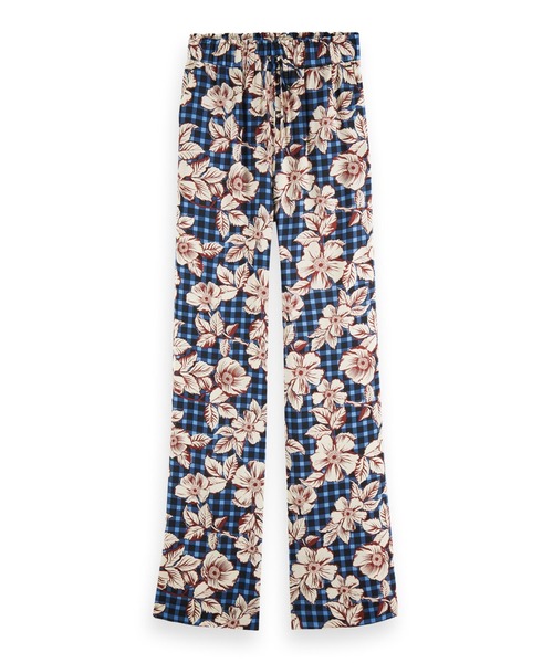大胆なプリントをあしらった、ワイドパンツ。 華やかなチェックとフラワープリントが、絶妙なカラーリングであしらわれたスコッチ&ソーダらしいデザイン。 ウエストゴムで履き心地にもこだわったアイテムです。 ---------- 2022SPRING SCOTCH & SODA ---------- 2022年Springコレクションは、50年代と60代のアメリカ、音楽、各国の文化のエネルギーを通じて自己表現の力を捉えています。 ウエスタンスタイルとフェミニンなシルエット、ロックンロールを意識したコレクションは、大胆な存在感のあるアイテムと日常を組み合わせ、季節を感じさせてくれます。 今シーズンのカプセルコレクションにインスピレーションを与えているのは、ユースの象徴でありロック界の革命児であるエルビス・プレスリーです。 楽しいディテールで気持ちがあがる、オーセンティックで表情豊かなデイリーウェアを提案します。