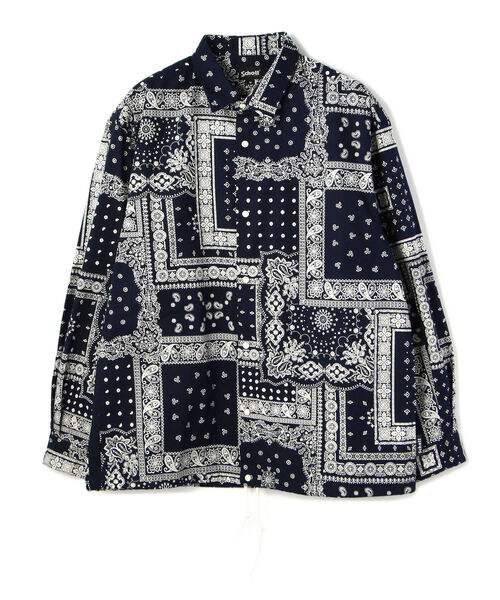国内製のバンダナプリントをした生地を使用。 コーチジャケットの様に裾にスピンドルが入っているシャツジャケット 釦は、ウエスタンシャツなどで使用される貝調のスナップ釦を使用 【Schott/ショット】 ライダースジャケットの代名詞ともいえるSchottの歴史は、1913年、ニューヨークでアーヴィン・ショットジャックショットの兄弟によって始まった。当初はレインコートを作る工場だったが、1928年に世界で初めてフロントジッパーを採用したライダースジャケット「Perfecto」シリーズを発売。ボタン仕様しかなかった当時、画期的なジャケットとして話題となり、その後のライダース史に大きな影響を与えた。そして、Schottの名を世界に知らしめたのが50年代に発表された星型のスタッズをエポレットに配した伝説のモデル”ワンスター“だ。 この新作こそが、映画『ザ・ワイルド・ワン(邦題「乱暴者」』で、マーロン・ブランドが纏ったと言われているモデルである。その後もラモーンズやセックスピストルズをはじめ、多くのロックミュージシャンに支持され、時代を超えた永遠の番として今なお多くの人々を魅了する。最近では定番モデルだけでなく、カジュアルラインも充実させるなど、常に時代に合わせて進化を遂げる革新性も忘れない。ライダースの歴史は永遠にSchottとともにある。
