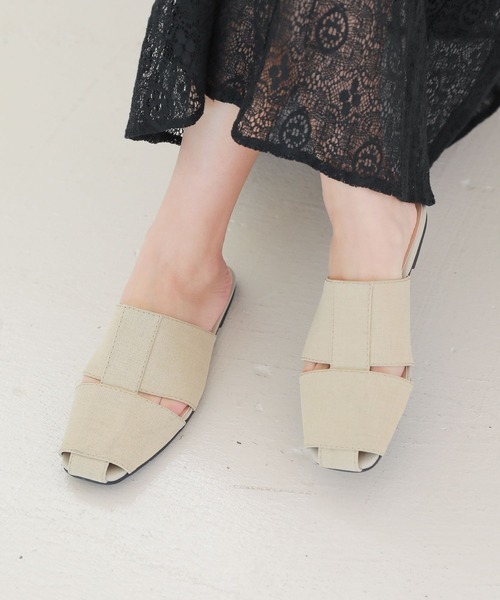 ワイドベルトでメッシュデザインに仕上げたサンダル。サッと履けるスリッパタイプで、抜け感のある1足です。パンツスタイルにもスカートスタイルにも合わせやすい、万能アイテムです。