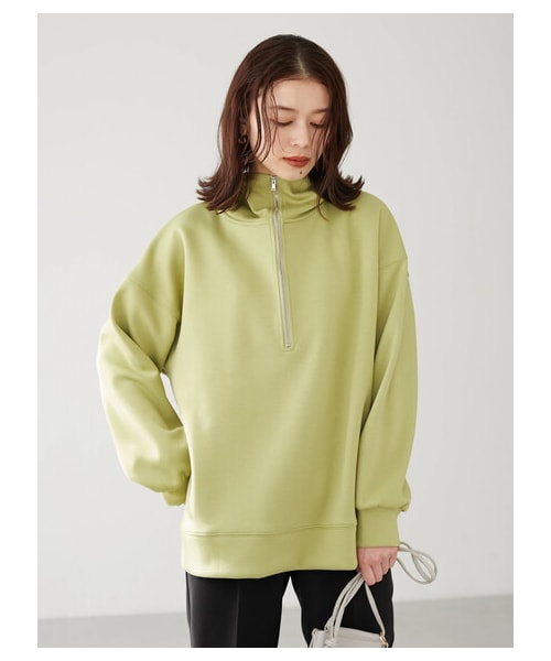 今年注目のハーフジップが大人カジュアルに装うパーカー。 しっとりと肌触りの良いレーヨン混で仕立てました。 ゆとりのあるサイジングにドロップショルダーがリラクシーな着心地に◎さりげなくジップをあけたルーズな着こなしもおすすめです。トレンドカラーを含むカラー展開にも注目。 透け感[やや有り] 裏地[無し] 伸縮性[有り] 光沢感[無し] 生地の厚さ[普通] 付属品[無し] ポケット[無し]