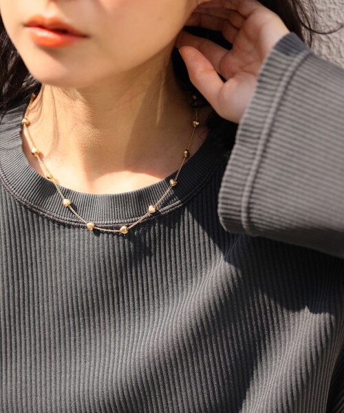 2022 Spring & Summer item小ぶりのハートがちりばめられたショートネックレス ●さりげなくアクセントになるハートモチーフネックレス●付けるだけで女性らしい雰囲気に●フェミニンなスタイリングにはもちろん、あえてカジュアルなプリントTシャツやボーダーTに合わせるのもおすすめです ※こちらの商品は、弊社管理上のカラーを表記しております為、タグのカラー表記と異なる記載となっております。 【サイト表記:タグ表記】・ゴールド:GOLD ※掲載画像の商品の色味は、屋外や屋内の光の照射や角度により実物と色味が異なる場合がございます。また表示のサイズ感と実物は若干異なる場合もございますので、予めご了承ください。 ※着用、お取り扱いの際は、商品についている品質表示とアテンションタグを必ずご確認下さい。【FREAK'S STORE/フリークスストア】私たちの心の故郷であるアメリカを中心に世界中から時々のテーマに基づく旬をセレクト。常に新鮮で、どこか懐かしく、さりげなく、こだわりを持って、モノだけではなくコト、その楽しみ方をフリークススタイルとして提案します。