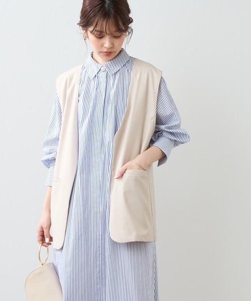 【2022SS natural couture】 ラフにトレンド感をプラスできる◎ちょっと大人なマニッシュベスト■Design 余計なディテールを敢えて施さず、シンプルに仕上げることで、普段使いにもプラスしやすい1着に仕立てました。フロントは釦ではなくホックのデザインで、スッキリとスタイリッシュな印象に◎シャツやブラウス、ロンT、ワンピースなど幅広いアイテムと合わせやすいミドル丈デザインに仕上げました。■Styling ボリューム袖のシャツやブラウスはもちろん、フラワーモチーフやティアード、レース使いのワンピースなど女性らしいアイテムに敢えて合わせて頂くとお洒落上級者な着こなしが叶います。普段のワードローブに取り入れて頂くだけで、着回しの幅が広がる1着です。■Fabric さらっとした素材を採用。シンプルなTシャツから袖ものまで、幅広いアイテムと合わせて頂け、ロングシーズンお召し頂けます。===============透け感:ほとんどなし裏地:あり伸縮性:なし光沢感:なし生地感 :さらっとした生地感===============【お気に入り登録でお得な情報がいっぱい】・「商品のお気に入り登録」で再入荷通知や、ラスト1点の通知、セール通知をいち早く受け取ることができます。・「ブランドのお気に入り登録」で新商品や再入荷など、お得な情報を受け取ることができます!