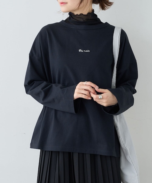 ピュアルセシン 2022 spring collection【Loose andclassical】リラックス感のあるルーズな着こなしや、今シーズンらしいミニマムでユーティリティな要素と素朴かつ巧みなハンドクラフト的なものとの融合させたスタイリングの提案◇定番なのに大人っぽい、洗練されたロゴTシャツ◇●デザインカジュアルテイストが強いTシャツですがブランドのロゴ刺繍と抜け感のあるシルエットが洗練されたDu noirらしい1枚に仕上げました。ゆとりのある身幅に肩の落ちたドロップショルダーがラフな着心地。お尻が隠れる程よい丈感なので、タックインしてもバランスが良く1枚ではもちろん、キャミワンピースのインなどレイヤードにも活躍してくれます。●カラー展開着回しやすいホワイト/ブラックにキレイめカジュアルなボーダーの3色展開です。●素材さらりとしたコットン100%素材。程よい厚みでロングシーズン活躍してくれます。●スタイリング肌寒い時期にはカーディガンやブルゾンを暖かくなればサロペットやキャミワンピースのインナーにも重宝します。ボトムスにはラフなデニムやワイドパンツ、きれいめなスラックスやマーメイドスカートなど合わせるアイテム次第でデイリーから休日カジュアルまで楽しめます。===============================透け感:ホワイトのみややあり裏地:なし伸縮性:あり光沢感:なし生地の厚さ:普通【スタッフコメント】年齢:20代半ば/身長:154cm/普段着用サイズ:Mサイズサイズ感:ラフな着心地ですが大きすぎず、カーディガンやアウターなど選ばず合わせられます。素材感:さらりと柔らかい肌触り。季節の変わり目に丁度良い厚みです。===============================※撮影場所やお使いのモニター環境により若干お色味が異なる場合がございます。特にロケの撮影では明るく見える傾向にございます。※予約商品はサンプルで撮影をしております。若干の仕様が変更になる場合がございますので予めご了承の上ご注文くださいますようお願いいたします 。