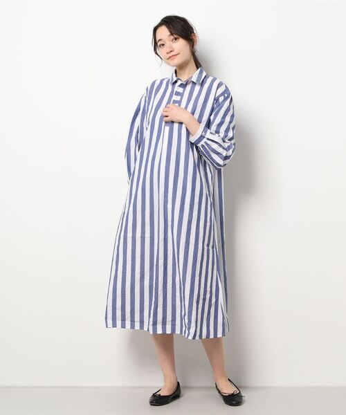 ストライプデザインが目を惹くワンピース。ハーフボタンに、Aラインシルエットで大人可愛く仕上げました。ふんわりと肌に優しい綿素材が快適な着心地に◎。ボディラインも拾いづらいので、華奢魅せにも効果的。甘さを抑えた上品なデザインなので、オンオフで着回しできるアイテムです。安心のペチコート付。