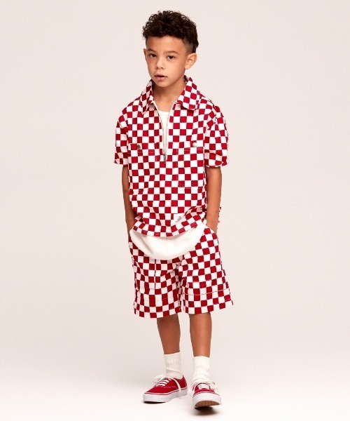 ※ モデル : 身長 121cm / 着用サイズ Mサイズ (120cm) 薄手ツイルでチェッカーフラッグ柄のプリント生地を使用しました ハーフジップ半袖シャツです。 同素材で、オーバーオール、ショートパンツを製作しております。 【サイズ目安】 Sサイズ : 100cm 程度 Mサイズ : 120cm 程度 Lサイズ : 140cm 程度 XLサイズ : 160cm 程度 【SMOOTHY / スムージー】メンズブランドを12年間手掛けてきた品川雄一ディレクションによるキッズブランド。 エグゼクティブディレクターには、現在スタイリストとして多くのメディアで活躍している菊池陽之介を迎え 、 THE DRESS WRAPPED WITH DADDY'S LOVE TO YOU. 『パパが考えた愛情に包まれた子供服』 というコンセプトに基づいて展開されています。 普遍的なアメカジをベースにワークやトラッド、ミリタリーの要素を加えたスタイルを提案。