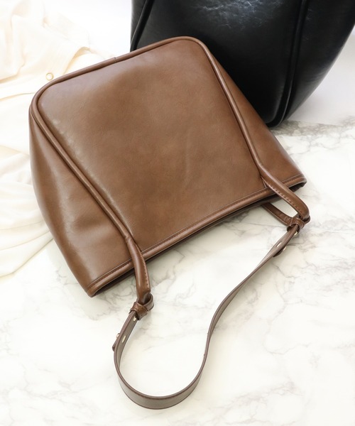 【高見えデザイン】【PUレザーの台形フォルムワンハンドルトートバッグ】大人気、台形フォルムのPUレザーワンショルダーバッグ。ツヤ加工を施した高級感のあるフェイクレザーの風合いから大人シックな表情。アクセントになる可愛いうさぎチャームがセットに!チャームなしのシンプルタイプもお選び頂けます。マグネット開閉で荷物の出し入れもラクラク。広めのマチ付きでザクザク入る大容量◎縦に長いフォルムなので、500mlのペットボトルを縦に収納可能です。内側にファスナーポケット・フリーポケットを各1ヶ所装備し、iPhoneや定期を入れるのに便利です♪きれいめデザインなので、普段使いからお出かけシーンにもフィットする万能トートバッグに仕上げました。[カラー]キャメル・モカ・ブラック[サイズ/重さ]バッグ:高さ26㎝/上横幅33㎝/下横幅24cm/奥行(マチ)11.5cm/ショルダー紐50cmうさぎチャーム:高さ24㎝/横幅9㎝560g[素材]PUレザー▼おすすめシーン通学 通勤 オフィスなどの普段使いにはもちろん、入学式 結婚式 パーティなどのフォーマルなシーンにも多用途にお使い頂けます。▼ブランド 【florge】 -フロージュ-「着る人の心や体を癒し包む服、何気ない日常をちょっとだけ特別な日に変えられるアクセサリー」をテーマに、おしゃれでかわいい商品からおとなめオフィスに使える商品までトレンドの人気アイテムをご提案するレディースブランドです。プチプラ商品を多く取り扱っているのも嬉しいポイント♪画像付近のブランド名からぜひご覧ください。【インフォメーション】▼商品のお気に入り登録 (カートの右のハートをクリック)完売カラーの再入荷通知を受け取ることができます。▼ブランドのお気に入り登録(上部のブランド名をクリック)新商品や再入荷の通知を受け取ることができます。