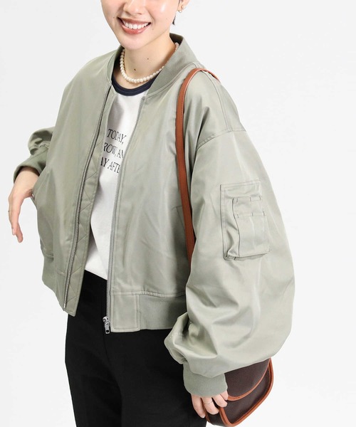 シンプルで着こなしやすく、シーズンレスに使える万能MA-1。 今年は裏地にカットソーを使用し、ボーイズライクなのに柔らかい肌当たりと薄手のインナーでも着用時にひんやりしないアウターに仕立て上げました。 また着丈を少し短く&袖に少々ボリュームを加えた絶妙シルエットが、背伸びしないこなれ感を出してくれるため通常のスタイルがよりお洒落に! デニムやスウェットパンツなどのカジュアルスタイルも、プリーツスカートや柔らかい素材のワンピースで可愛らしいスタイルにも、コーディネートしやすく快適な1枚です! カーキより程よく優しい色味のオリーブと、マットなブラックの2色展開。