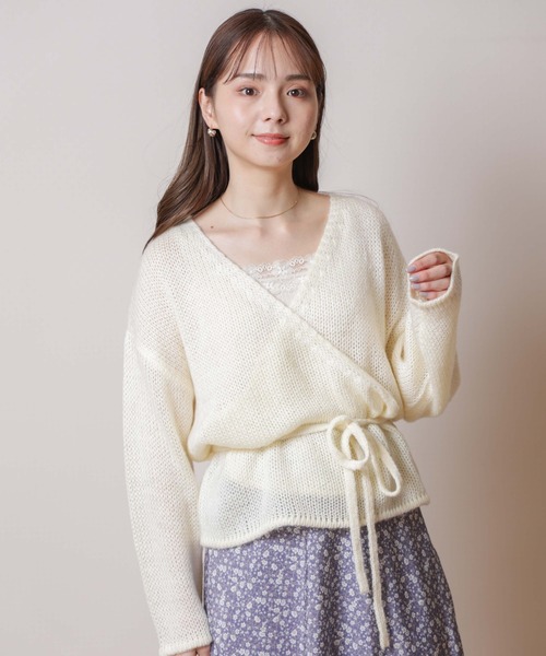 透明感たっぷりなニットカーディガン。つやっとした糸をゆるく編みたてて、シアー感が楽しめるアイテムに仕上げました。軽やかな春先にぴったりな1枚です。カシュクールデザインがすっきりと大人っぽく見せてくれるので、ボーダーカットソーやデニムなどカジュアルなアイテムとのスタイリングもフェミニンな雰囲気に♡flowerオリジナルのレースインナーと合わせた甘めな着こなしもおすすめです。【お買い物を上手にお楽しみいただくためのPOINT2つ】◎ 購入ボタン横の ♡ (ハートマーク)をクリック! 完売カラーの再入荷通知、残り1点の通知、セールの通知を受け取れます。 (クリックまたはタップで商品のお気に入り登録♪)◎ ショップのトップページにある ♡ (ハートマーク)「お気に入りショップに追加」をクリック! 新商品や再入荷等、いち早くブランドのお得な情報を受け取れます。 (ブランドのお気に入り登録♪)