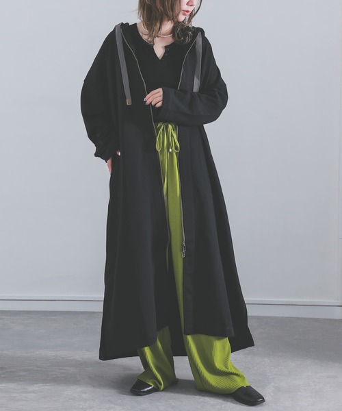 ラフに羽織って、どんなスタイルも決まるロングパーカー。 脇のスラッシュ開きとフードデザインが、抜け感のあるラフな印象に。 ロング丈のスウェット生地で、シンプルさが魅力です。 太めの配色フード紐とアンティークゴールドのチップは胸元でさりげないアクセント。 絞らない袖口デザインなのでロールアップしても◎ 上下どちらにも開け閉めできるファスナーで足さばきはラクに。 同色の飾りステッチでさりげなくセンスをプラス。 着心地にもこだわった綿混の裏毛スウェット生地は、柔らかく程よい厚みでロングシーズンお洒落を楽しめます。 シンプルだからぱっと羽織れる≪n'OrLABEL≫スウェットロングパーカーです。