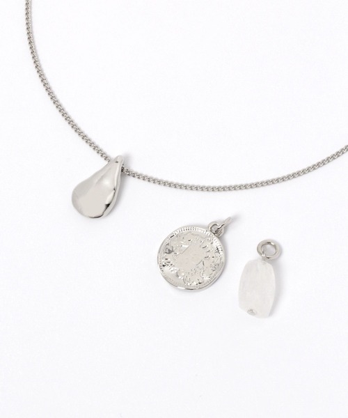 ◆デザイン◆ シンプルなチェーンと3つのチャームがセットになっているネックレスです。 ネックレスの先端のバーでチャームの取り外しが可能になっています。 スタイリングに合わせてチャームを選んで変えられたり、セット付け出来たりとお好みに合わせてお楽しみ頂けます。 長さの調節も簡単に出来ます。 ◆スタイリング◆ トップのデザインが映える様なカーディガン×インナーなどで合わせるのがオススメです。